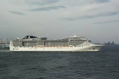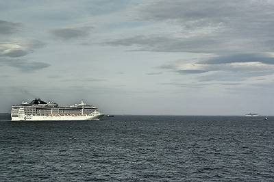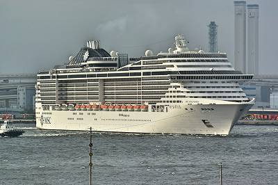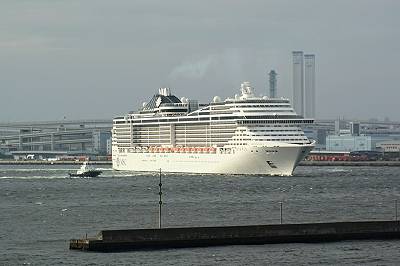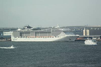 この日は沖を晴海から出航したコスタネオロマンチカが先行して通過してました。