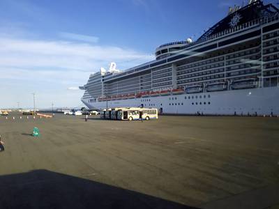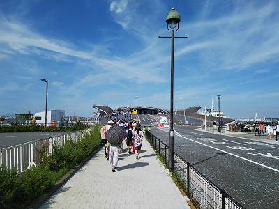 荷物を預けた後、シャトルバスで大黒ふ頭という流れ。