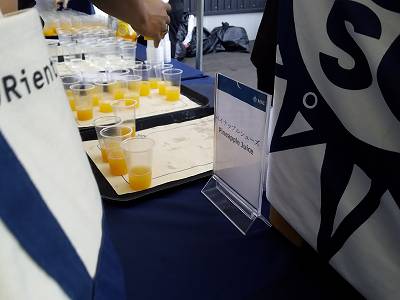船のクルーが飲み物をサーブしてました。