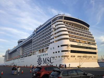 大桟橋から大黒ふ頭に停泊中のMSCスプレンディダが見えてます。