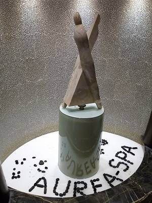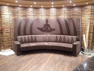 ソファ中央に描かれているのがアウレアスパのシンボルです。