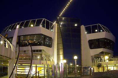 夜のデッキをちょっと歩いて...