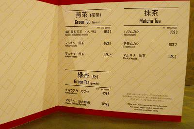 こちらはお茶のメニュー