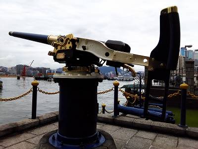 1800年代半ば、当時の香港経済を牛耳っていたのは阿片商ジャーディン・マセソン商会でしたが、ジ社は東角に独自の砲兵中隊と護衛兵部隊を持っていて、大班が香港の港を出入りする際は祝砲を撃つのが伝統でした。 1850年代のある日、時の大班、ロバート・ジャーディンがイギリスから戻ってきたときに、最高の敬意を示す21発もの祝砲を撃ったところ、香港に赴任したての英国海軍将官が、このジ社の伝統を知らなかったので、「祝砲を撃つのは政府が海軍船を迎えるときに撃つものであって、一民間企業が撃つとは何事だ!!!」と怒り心頭... この罰則として、それ以降ジ社が香港の午砲を打つように命令したということなのだとか。 その後、この伝統は1941年12月、旧日本軍に香港を占領されるまで続き、戦後1947年8月に再開されます。 1961年に砲の音に対する苦情が増えたこともあり、海軍警察の好意により、現在使用している「ホッチキスマーク・1-3ポンド海軍速射砲」に変わりました。砲が撃たれると、8つのベルが鳴り、午前の当番が終わったことを知らせます。