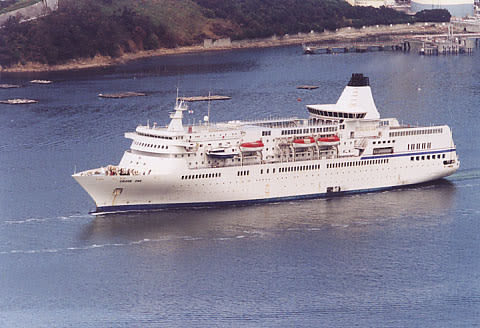 元日本クルーズ客船の"おりえんとびいなす"だった船。 当時の諸元は 総トン数:21,884t 全長:174.00m 全幅:24.00m 喫水: 6.52m 乗客定員: 606名 建造:石川島播磨重工業 東京 2001年に「ふじ丸」と共にNCC(日本チャータークルーズ)に移管。 しかし、運航されることは無く相生のドックに係留。 2005年9月14日に名称を"Cruise One"と変え相生を出港。 改造されて"Delphin Voyager"となりました。 相生から出港する時の"Cruise One"の絵です。