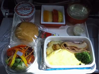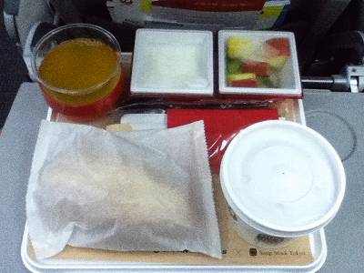 復路も往路と同じく飛んですぐ軽食。降りる前に朝食だったんですが...