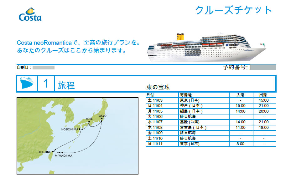 11/3発 コスタ・ネオロマンチカ 東の宝珠クルーズ日程