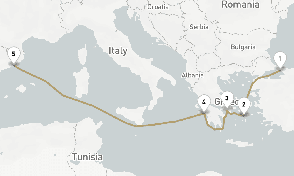 2025年10月6日8日間 / 7 nights / 8 days, one-way from Istanbul to Barcelona