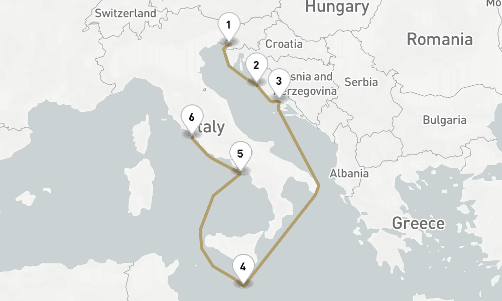 2024年7月1日8日間 / 7 nights / 8 days, one-way from Trieste to Civitavecchia (Rome, Italy)