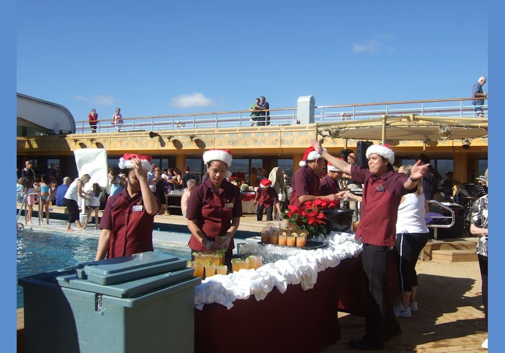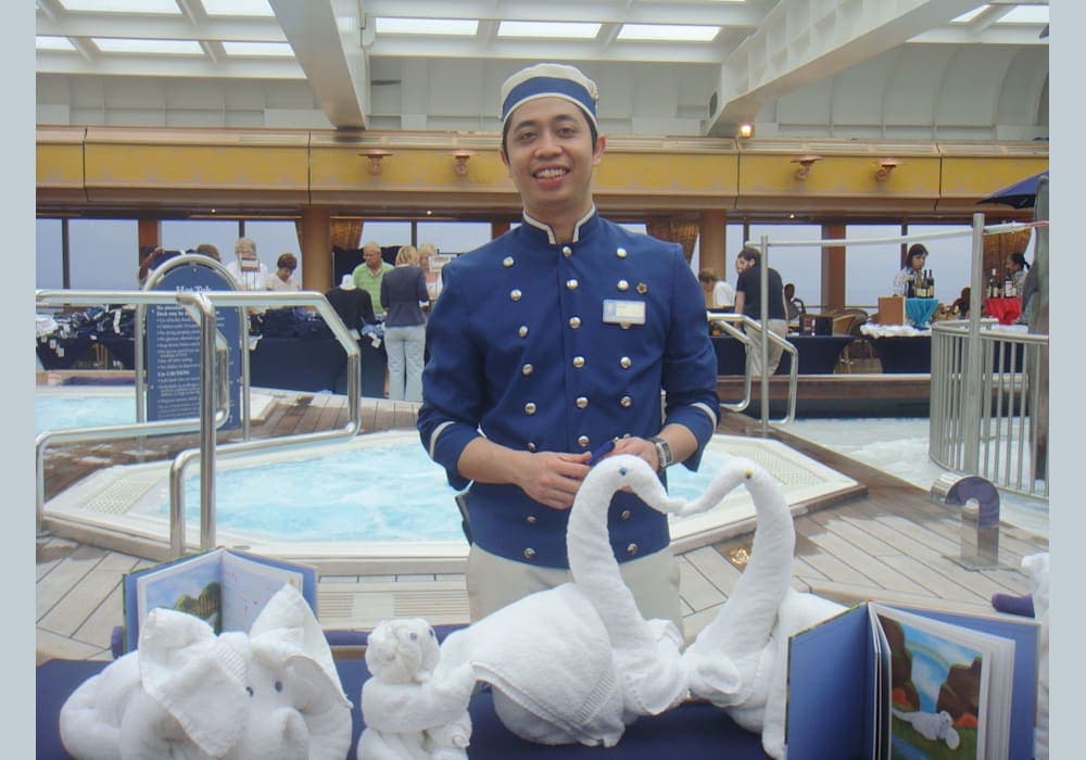 ワーカーは一生懸命サービスしてくれた。時々少しゆるいと感じる時もあるがバリ島出身者が多いインドネシアのワーカーは、ロングクルーズのゆったりとした雰囲気に良くあっている。インドネシア語と日本語のエクスチェンジも楽しかった。この時お世話してくれたメンバの一人とは、3年後パナマ運河クルーズでも再会することとなる。