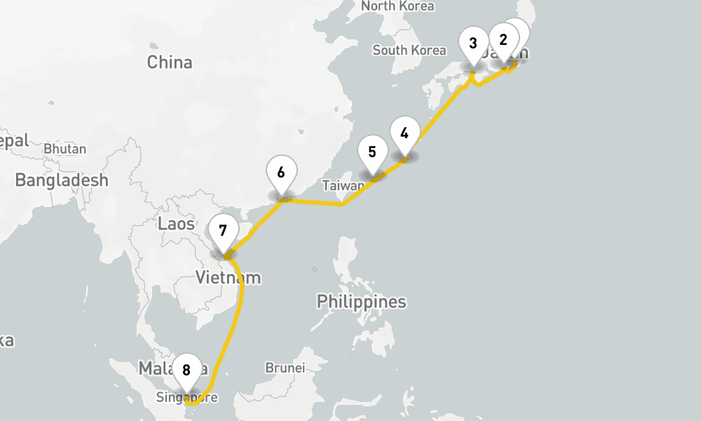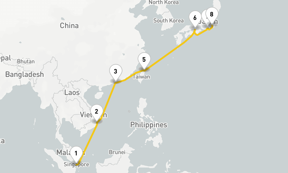 2023年7月31日13日間 / 12 nights / 13 days, one-way from Singapore to Yokohama (Tokyo, Japan)