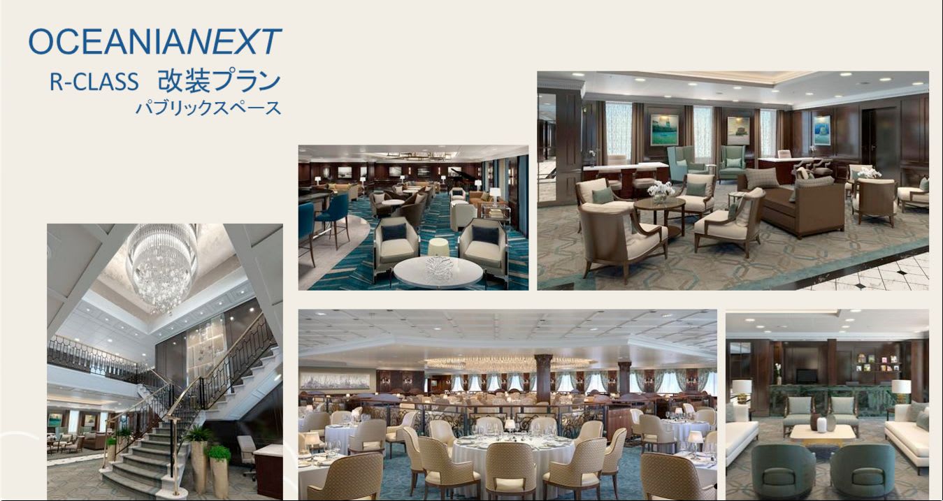 続きまして、Rクラスなんですが、つい先日大規模な改装プランを発表になりました。全ての船にですね、おおよそ35億円ずつをかけまして、2018年から2020年にかけてこのような非常にモダンな船内に見える形で改装を勧めていきます。