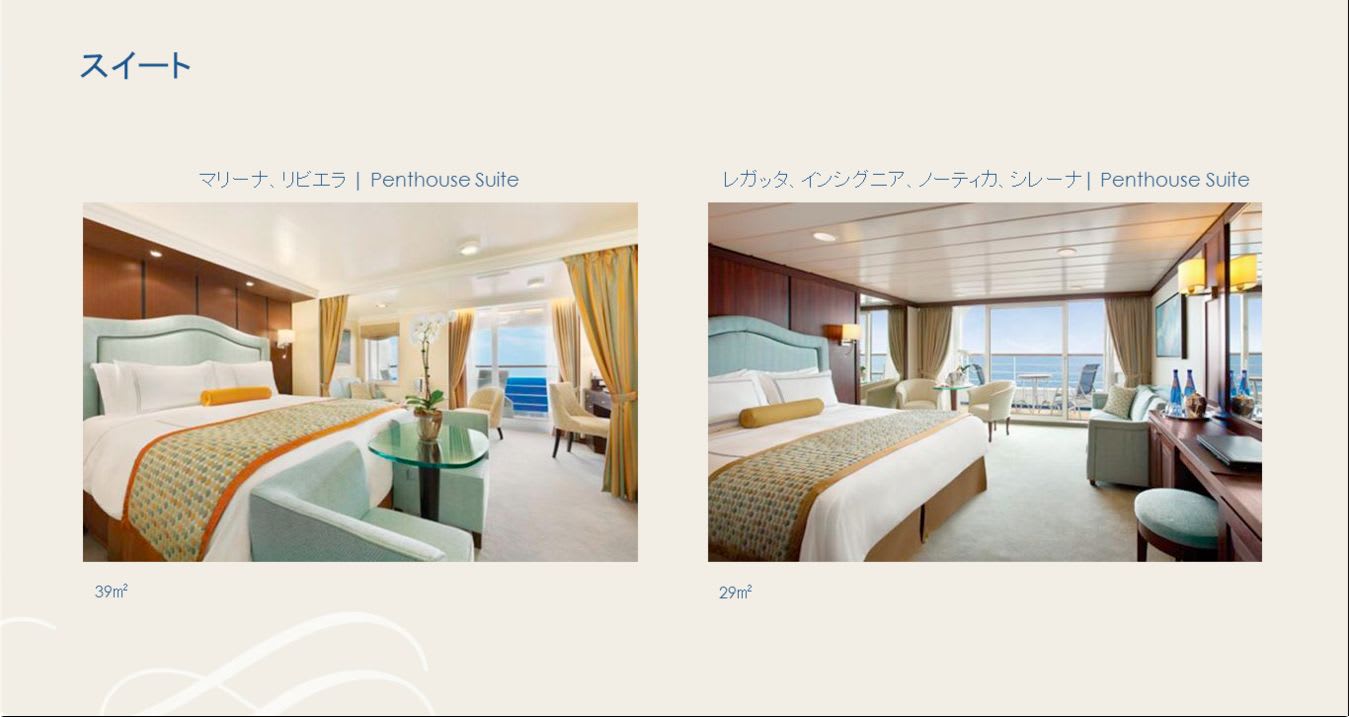 他スイートは「ビスタ・スイート」、「オーシャニア・スイート」
