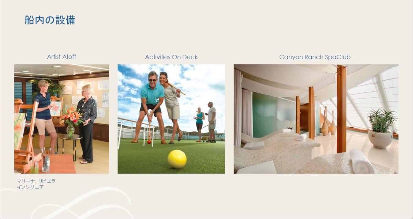 それ以外の船内の設備ですね、スポーツであったり、アートを楽しめる設備などもご用意しております。