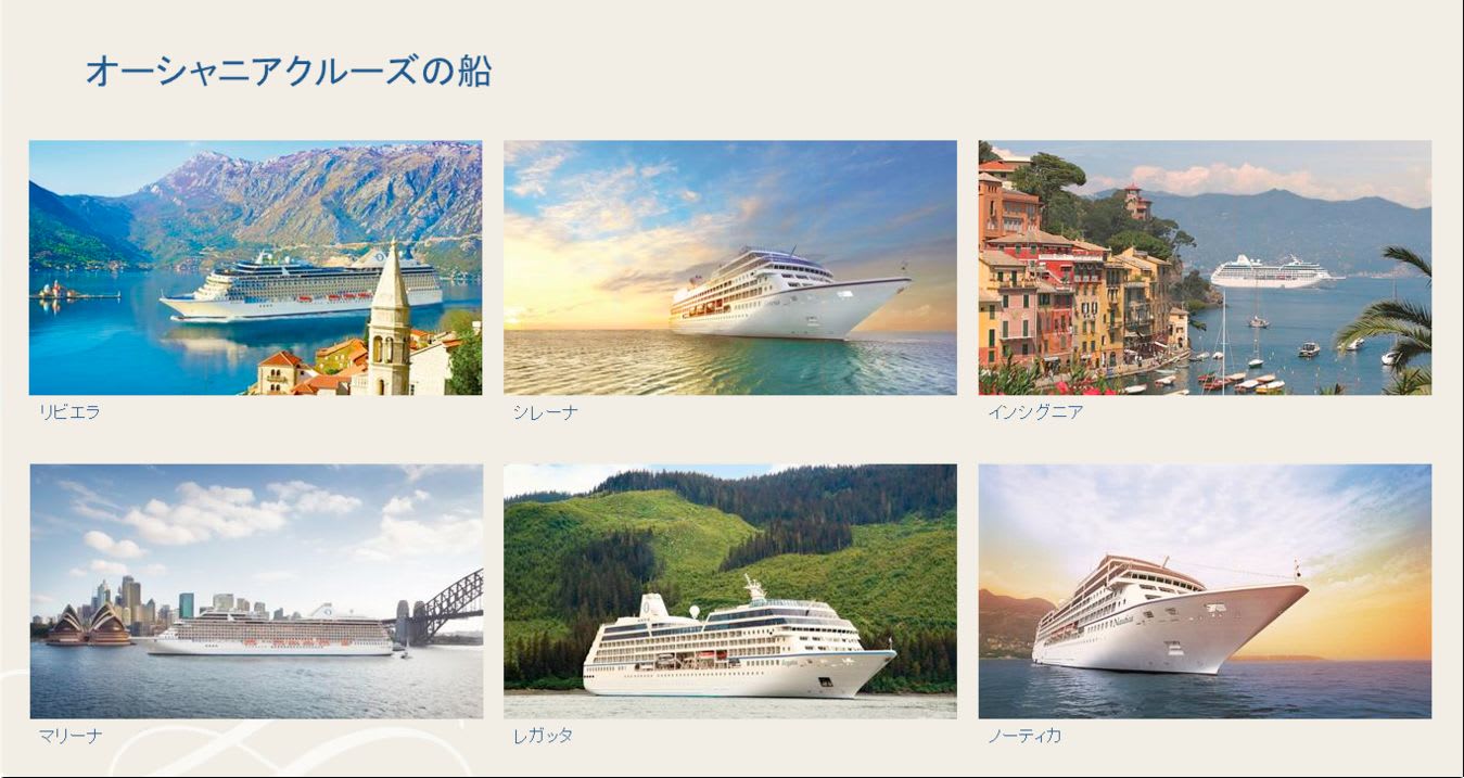 オーシャニアクルーズの船なんですけれど、6隻運行しております。