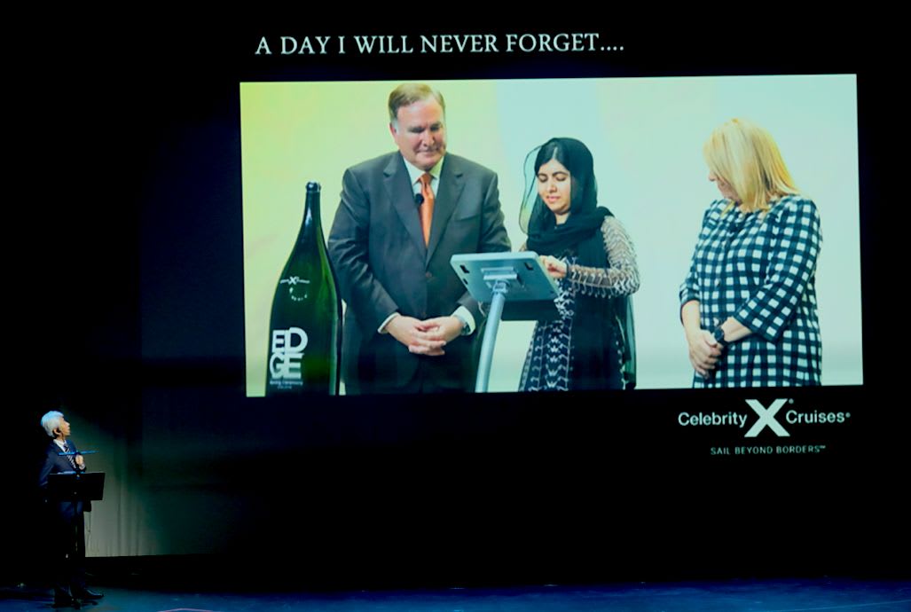 2018年12月にセレブリティ・クルーズの最新客船セレブリティ・エッジの名付け親となってくれたのは、ノーベル平和賞を受賞されましたマララ・ユフサイさんです。