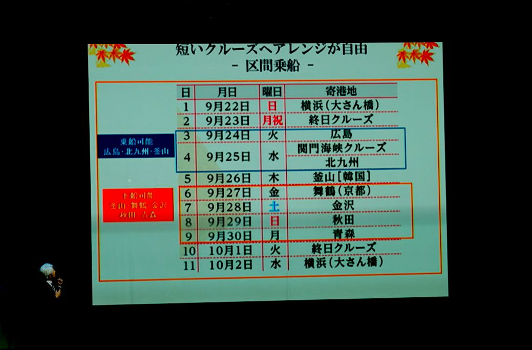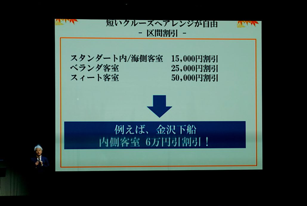 途中下船するとそのオンボードレベニューが目減りするので、船会社と交渉した結果、「我々はもっと日本でクルーズを認知させていきたい」「そういう役割を持っている」ということを強く話しまして、このようなプランを作ることが出来ました。