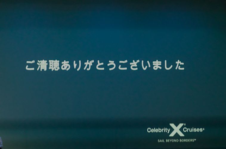 そしてこの船は関門海峡を通すことに成功した日程ですので、私は日本のお客様がご参加いただいても必ずや満足し、そしてセレブリティのスタンダードなサービスのクオリティに対して喜んでいただけるものだと自負しておりますので、よろしくお願いいたします。