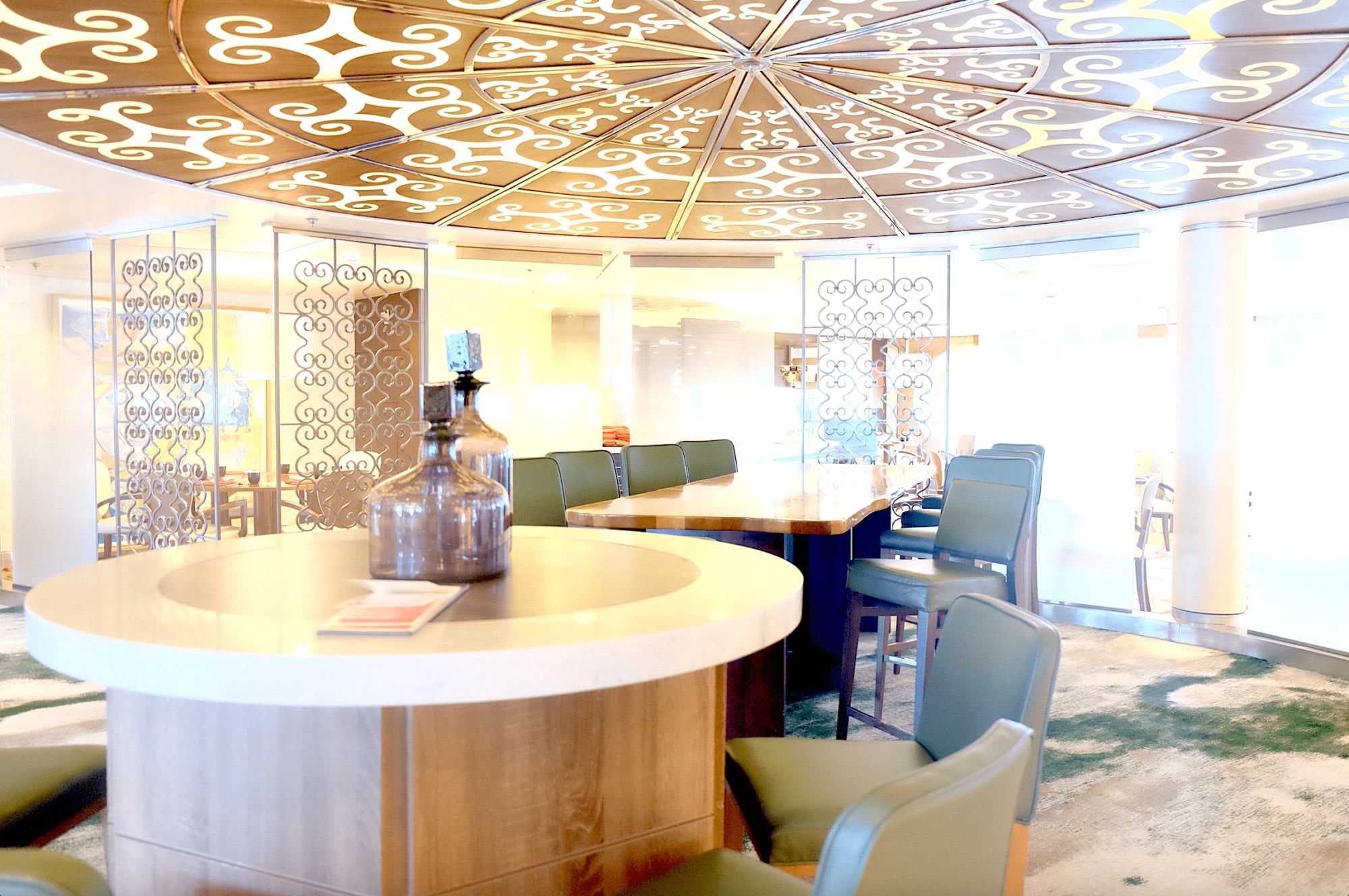 メインダイニングのすぐ隣にあるランデブー・ラウンジもいいですね。お食事に行く前にちょっと1杯ひっかけていくにはちょうどいい場所ですね。ハッピーアワーもあるので、一杯飲んでからお食事に行くのがいいですよ。