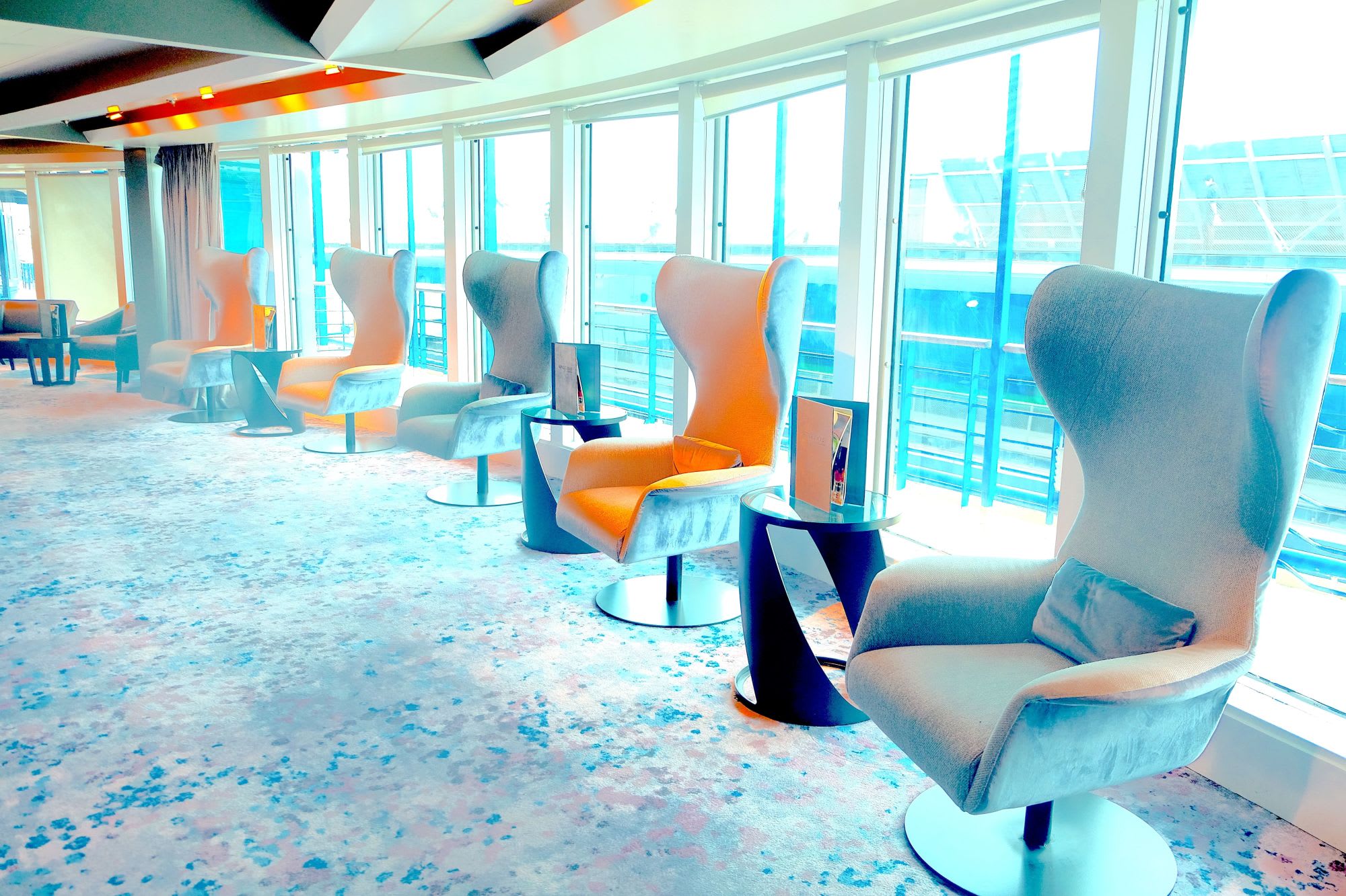 Cruisemans:確かに、船内で感じるのが、なんだかリラックスできそうな空間が至る所にあるなということ。船内のパブリックスペースにはセンスのよいソファーが至るところに配置されていますよね。