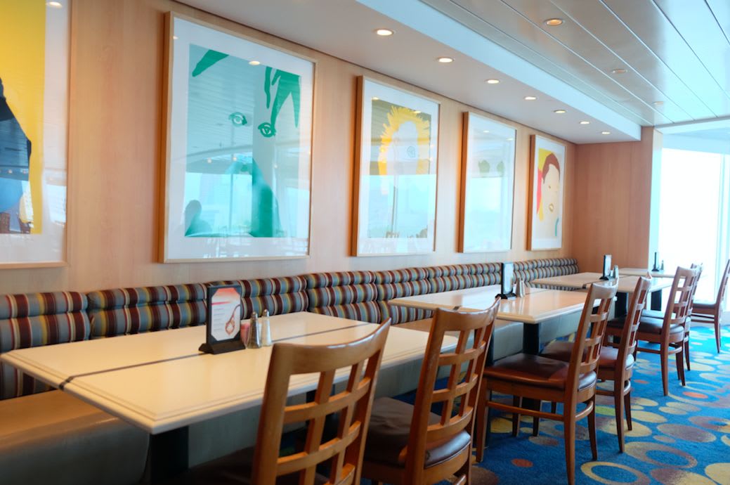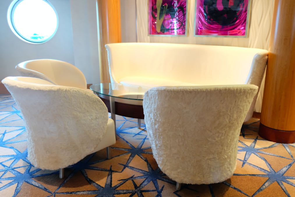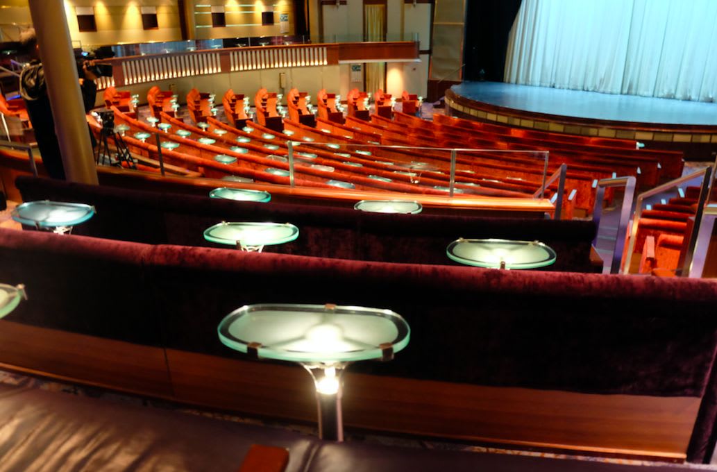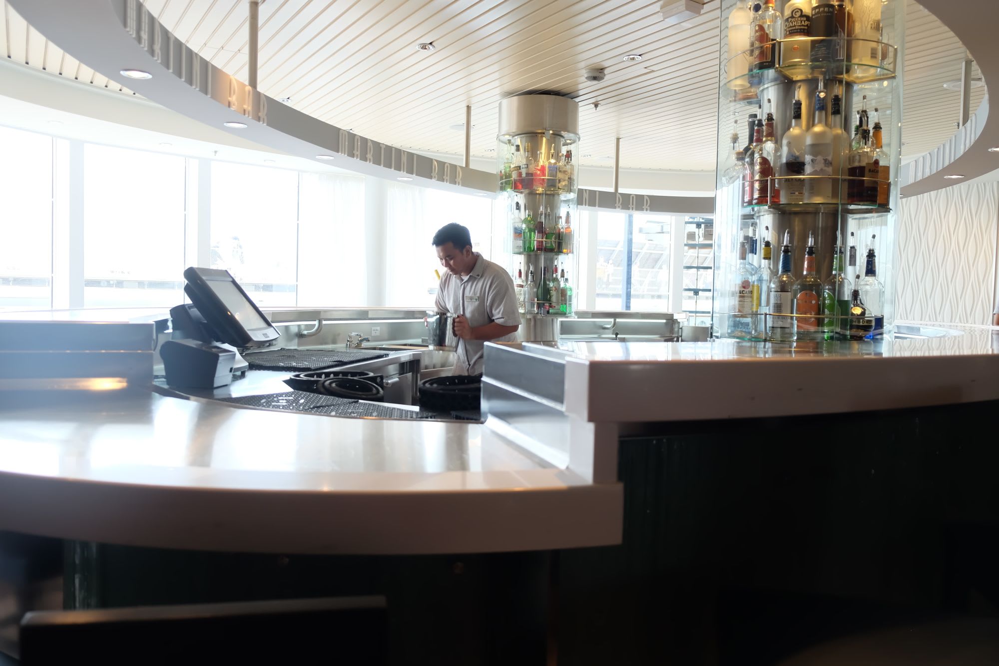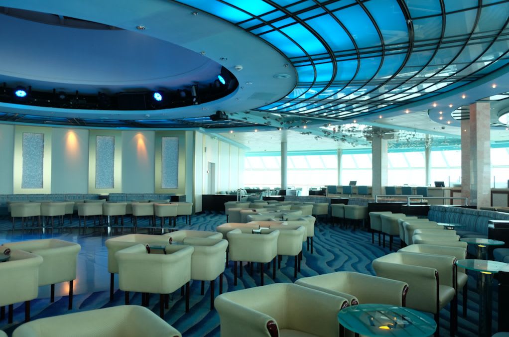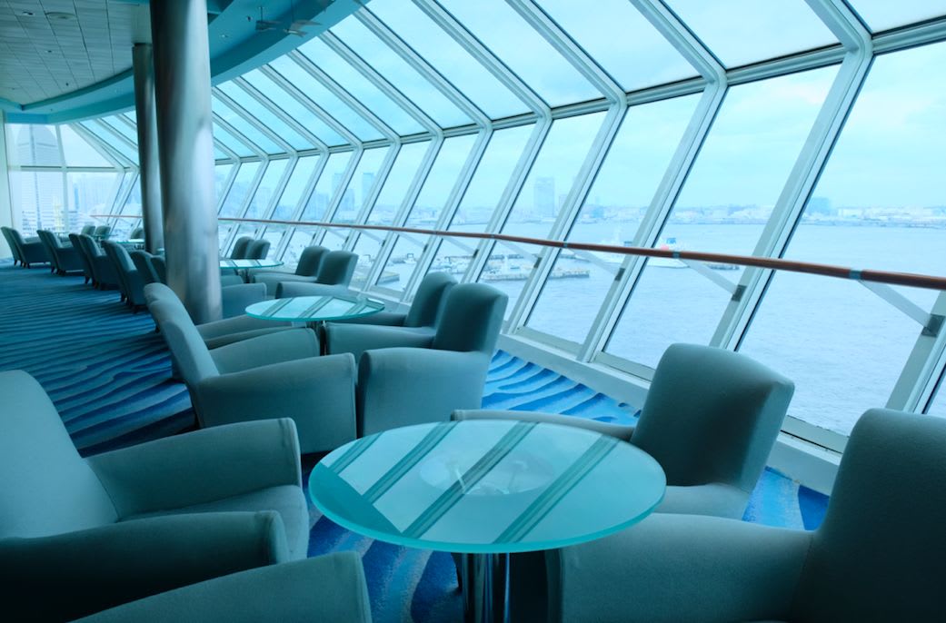 海に面した側はガラス張りで開かれた雰囲気。アラスカクルーズなどの風景を楽しむシー・デーはコスモスラウンジで日中を過ごす楽しみ方ができそうだ。