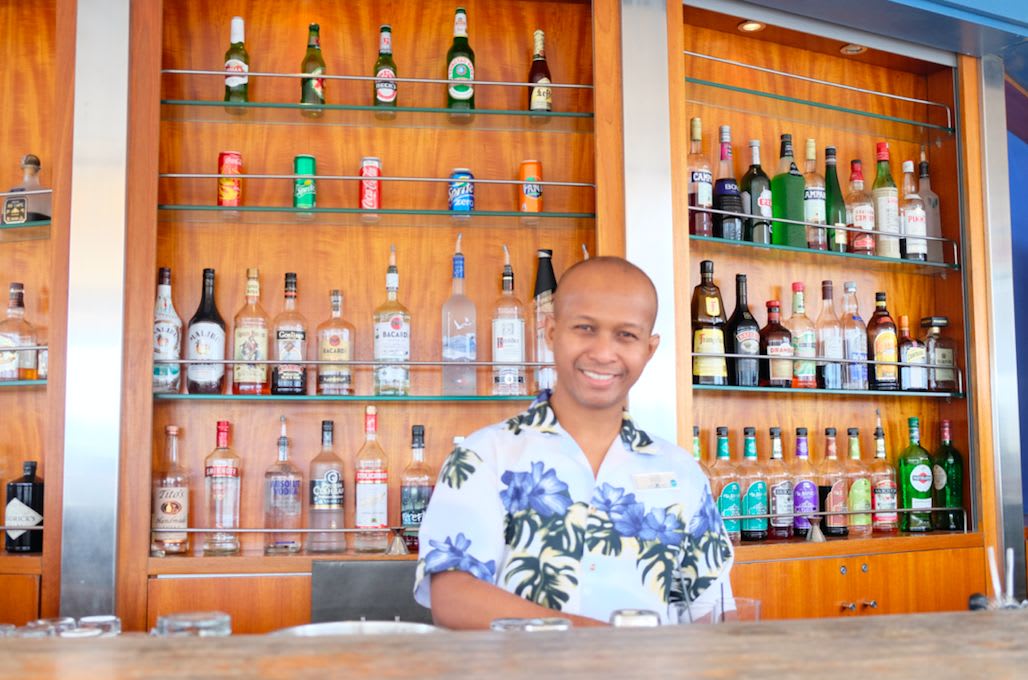 プールデッキの後ろ側に位置しており、AM6:30〜翌AM1:00まで利用可能。ドリンク・ディスペンサーは24時間利用が可能。