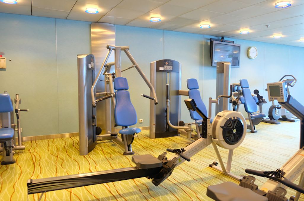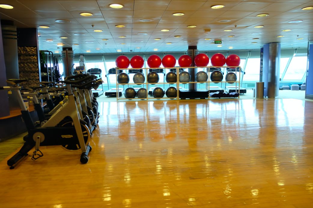 船上とは思えないほどの設備を備えたフィットネス機器がたくさん