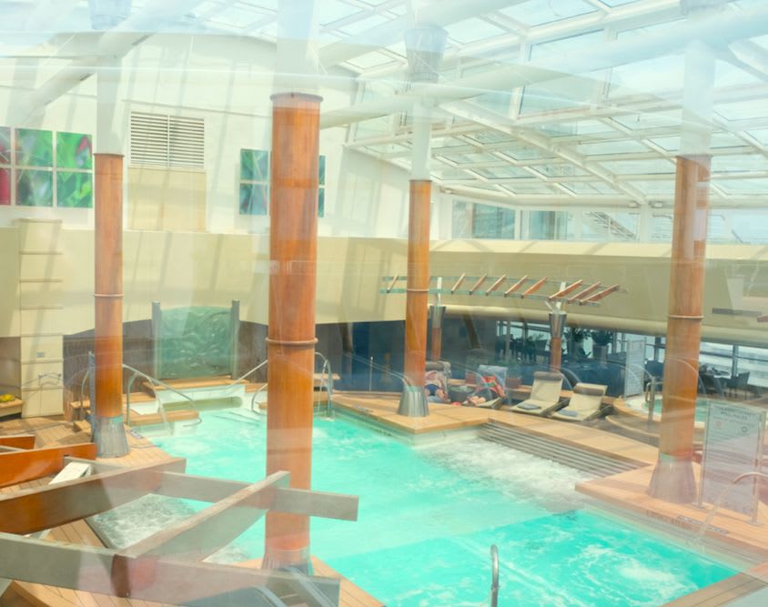 プールデッキにはホットタブも数か所配置されており、リラックスした時間を楽しめる