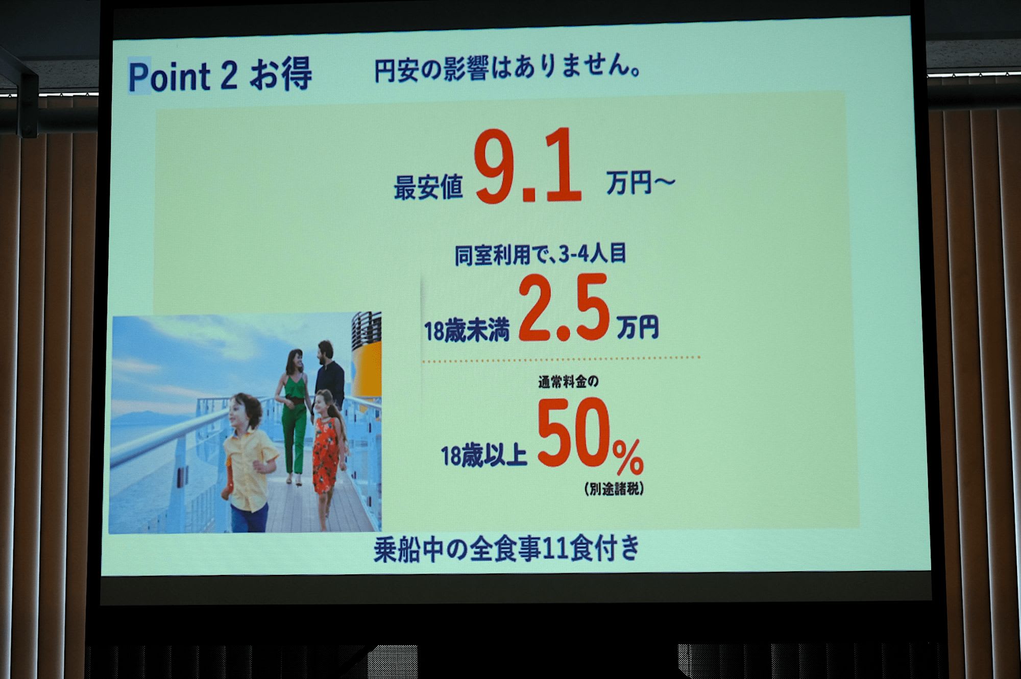 今回なんですけれども、クルーズ代金の料金設定が円高のときに行っております。そのため、最近は1ドル150円に迫る円安傾向にはなっているんですけれども、そういった影響も受けておりません。