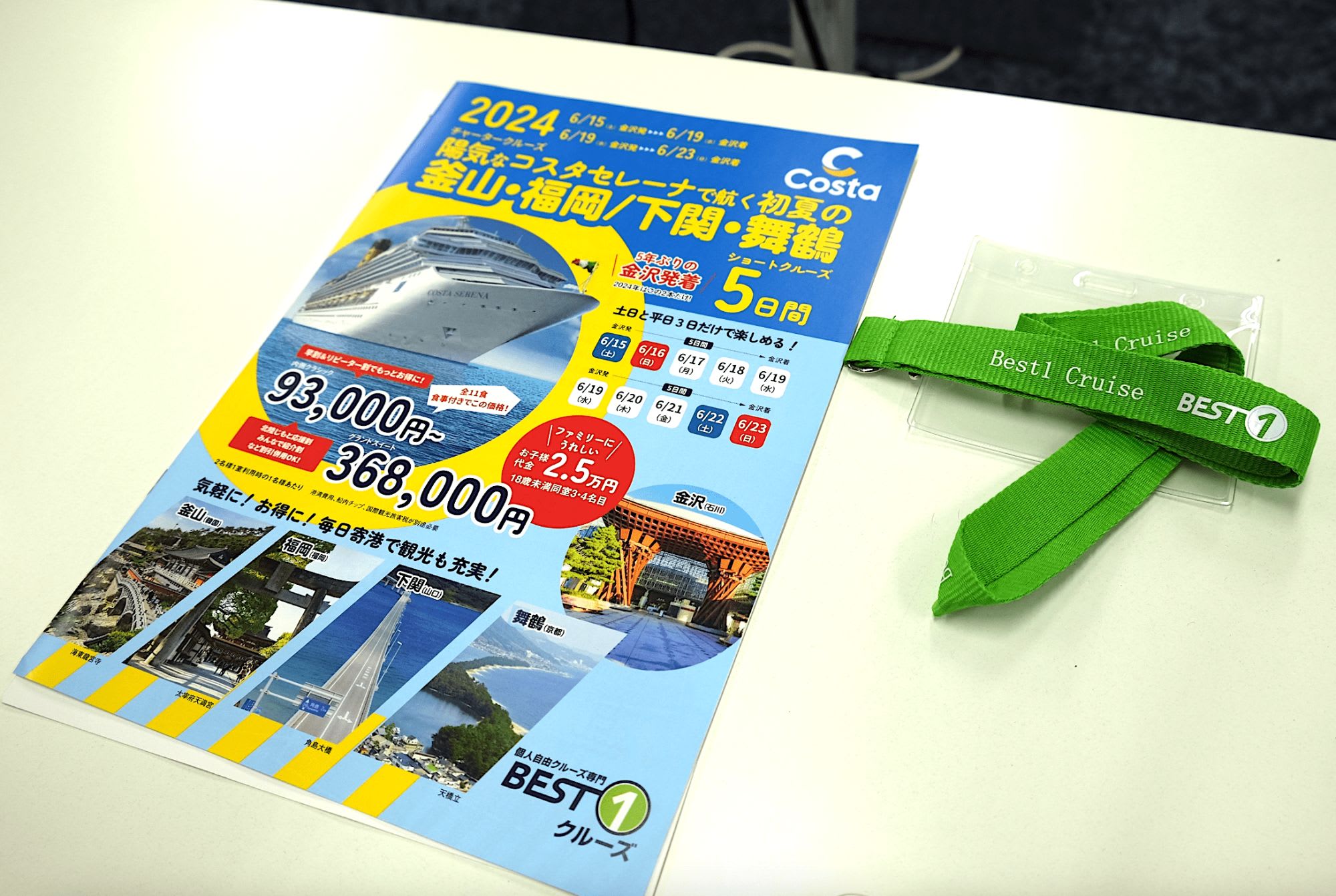 ベストワンクルーズのコスタセレーナ5日間クルーズのパンフレットとネックストラップ