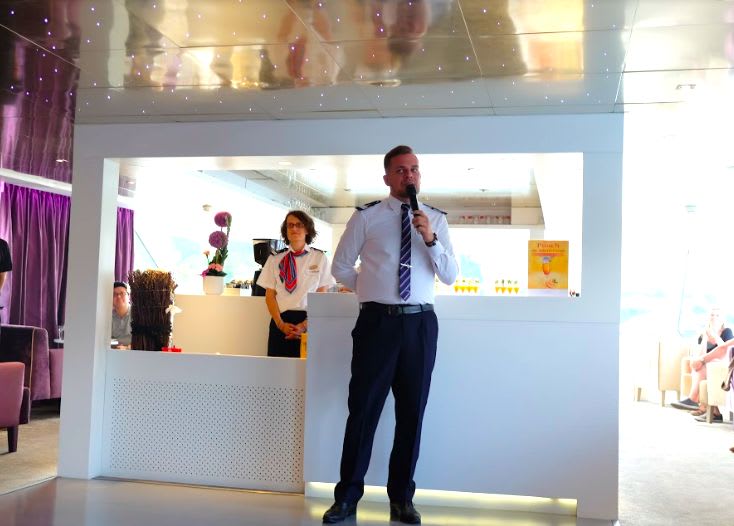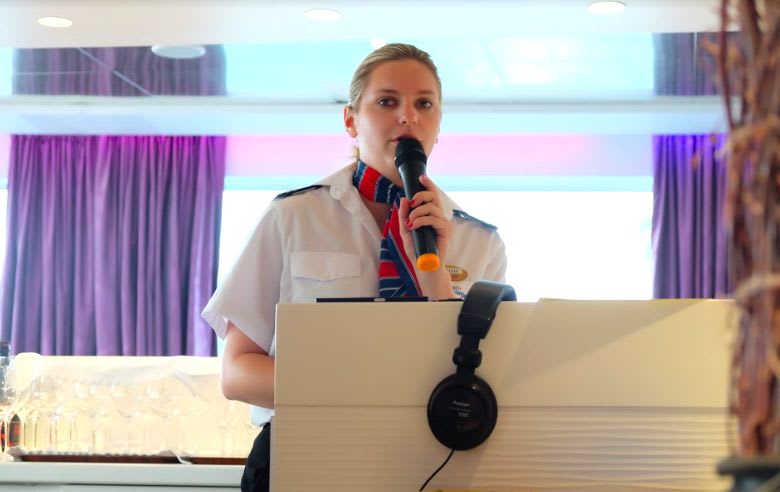 クルーズディレクターのジュリアン。4ヶ国語を操る多彩さです。