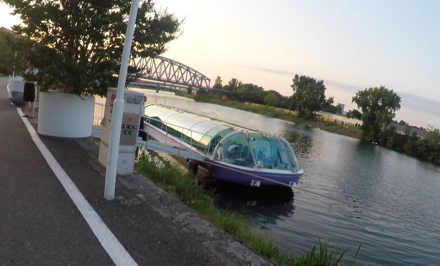 停泊している港に全面クリアルーフのボートが来るのでみんなで乗り込みます。