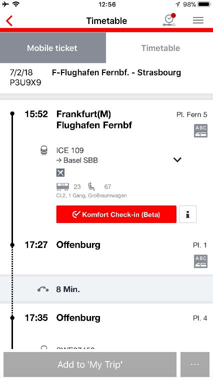 列車は全て日本で、「DBnavigator」appを使って予約しました