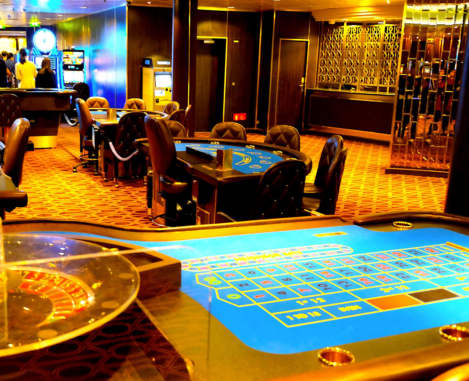 船内はまるで一つの街のよう。ブランド品を扱う免税ショップや毎晩ショーを楽しむことができる劇場、海外式のカジノ、そしてプールやスパ、ジムなどがあり、一日中楽しめます。