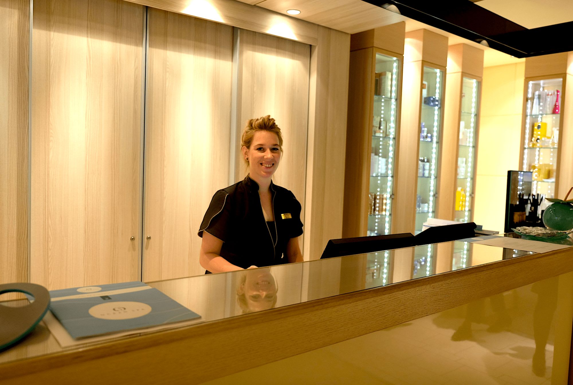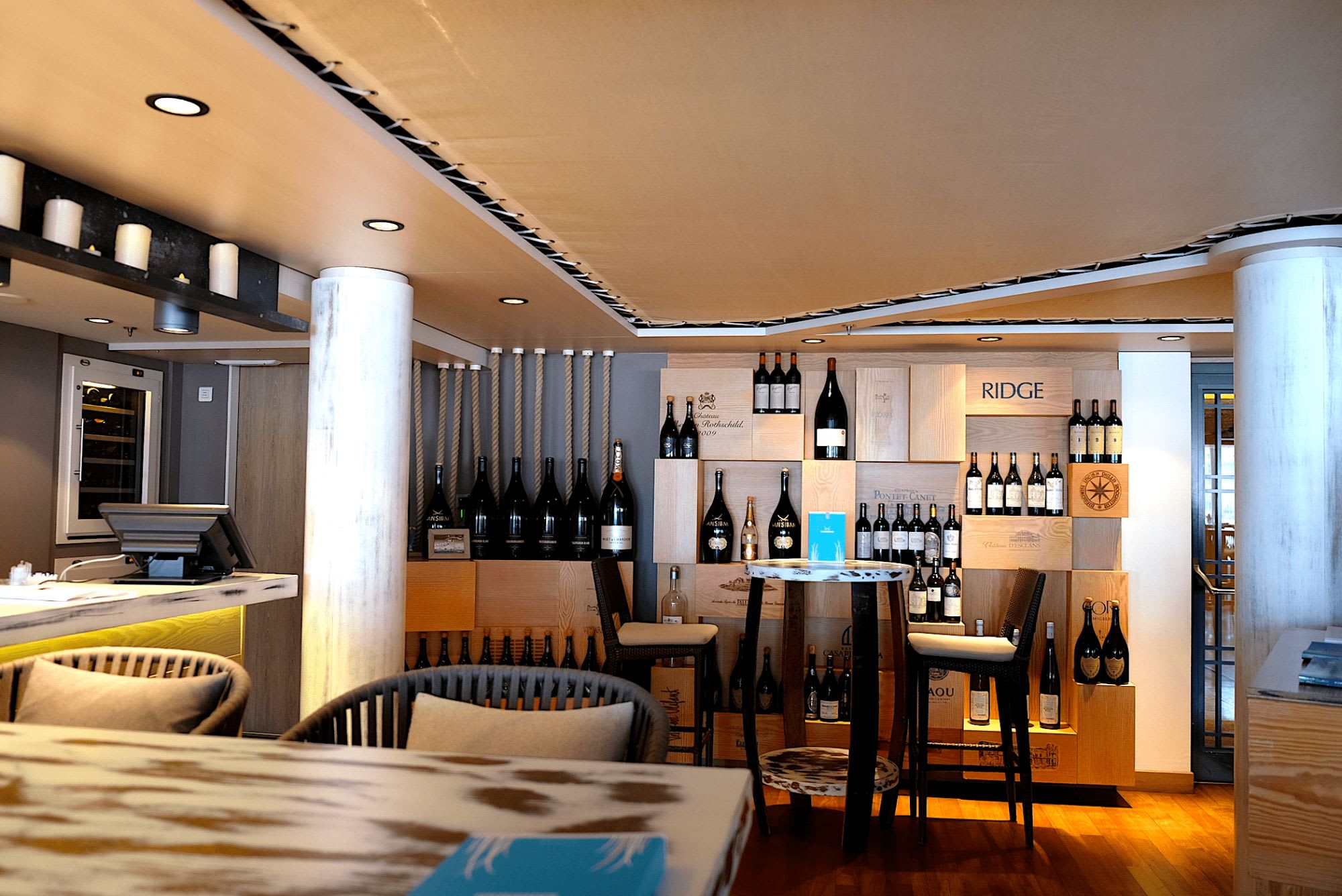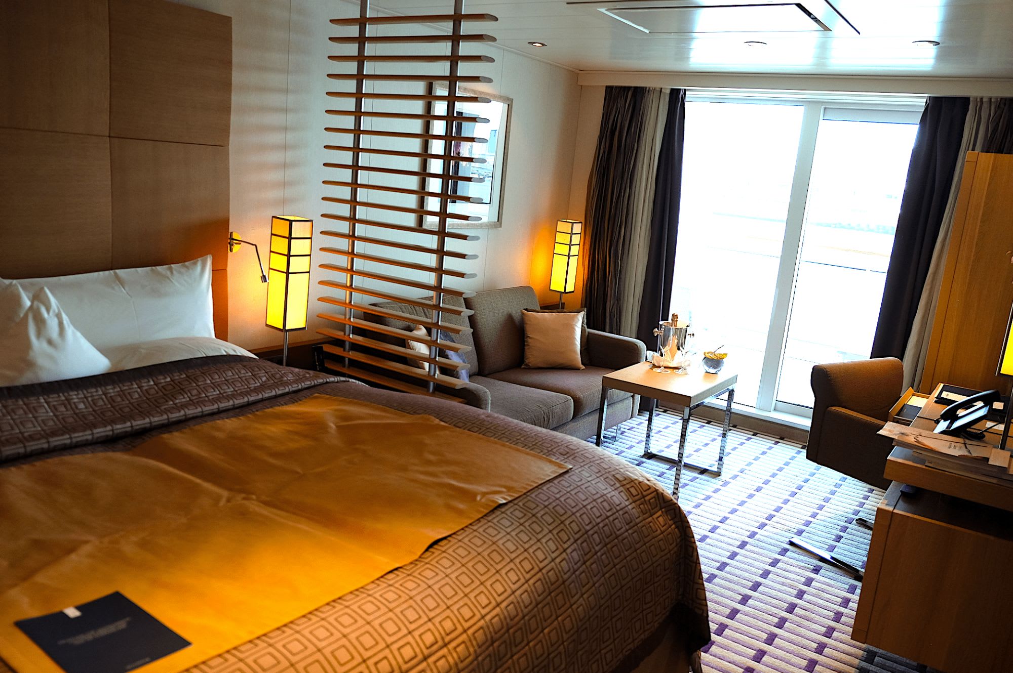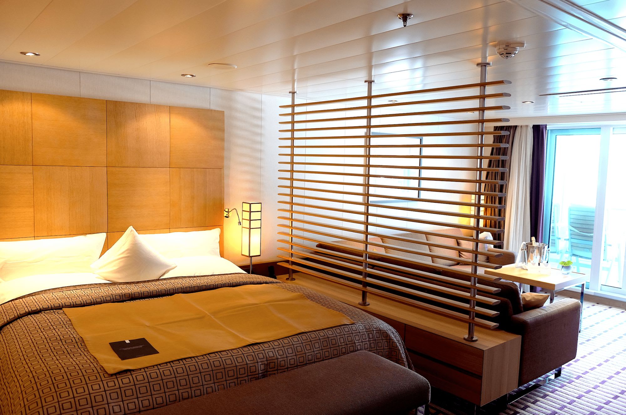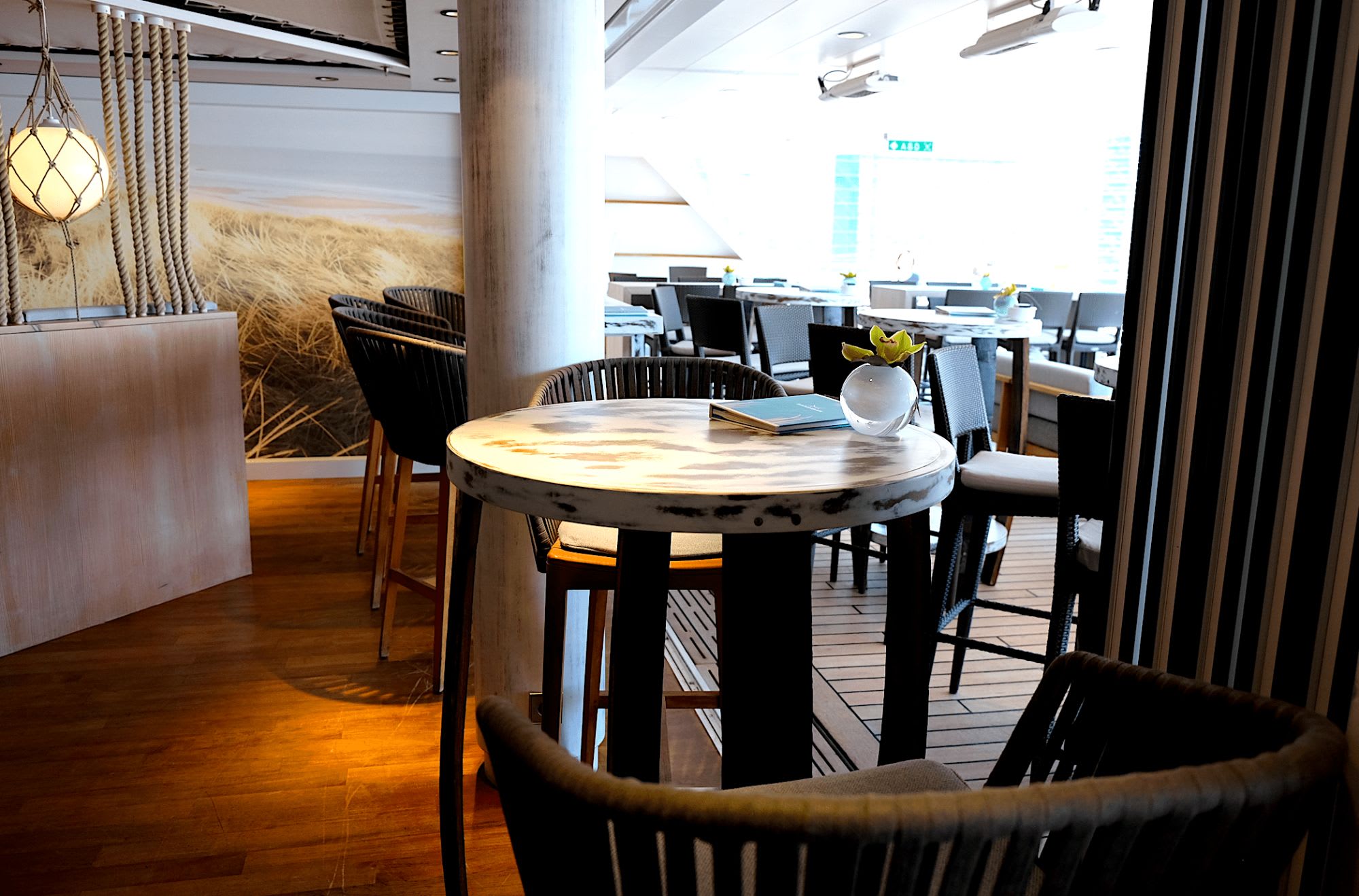 船内のパブリック・スペースには木が多くあしらわれ、高級でシックなデザインながらも温かな雰囲気があった。