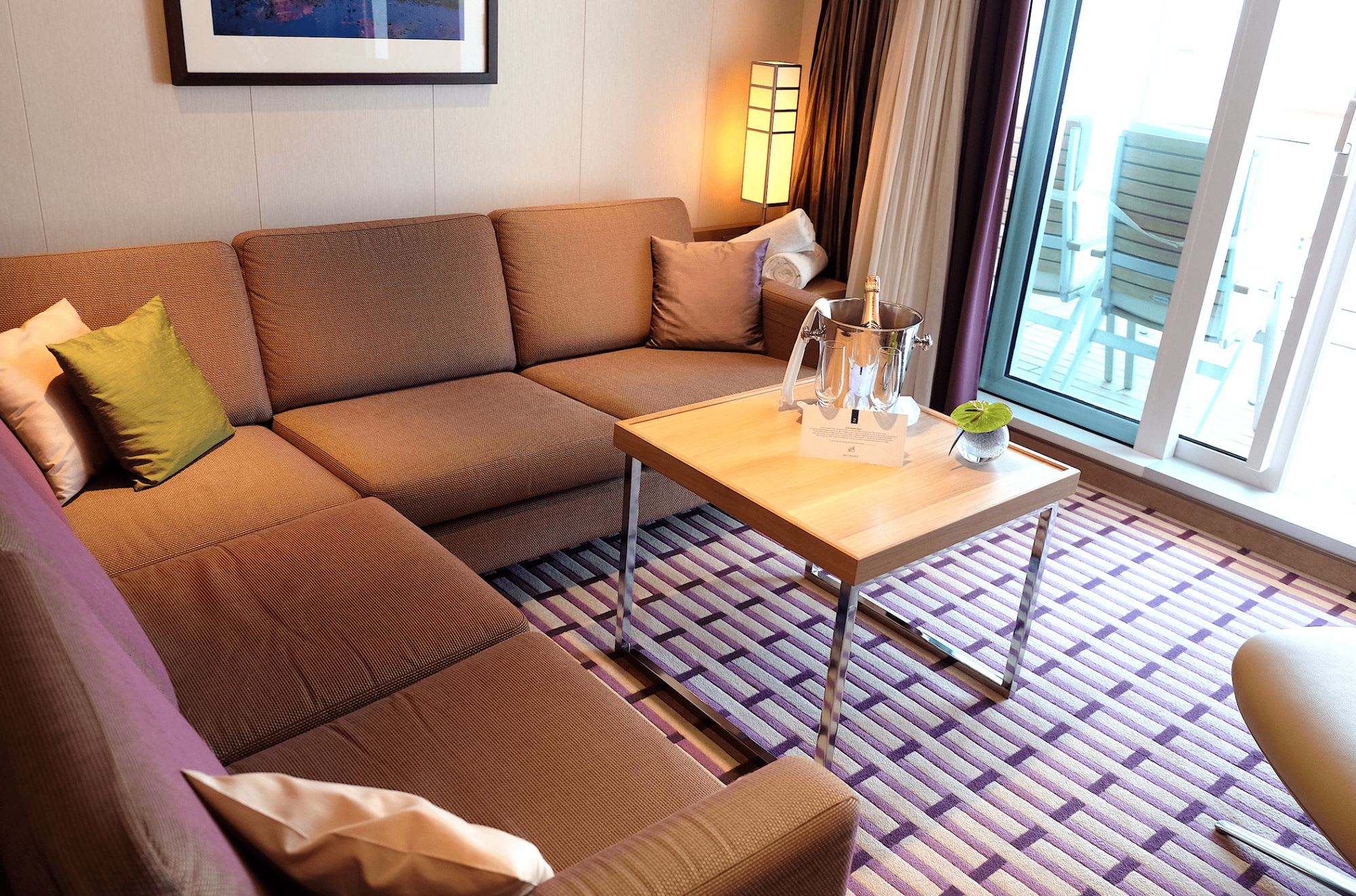 客船オイローパ2の客室は全室スイートベランダ付き35㎡〜114㎡のゆったりとしたものとなっている。