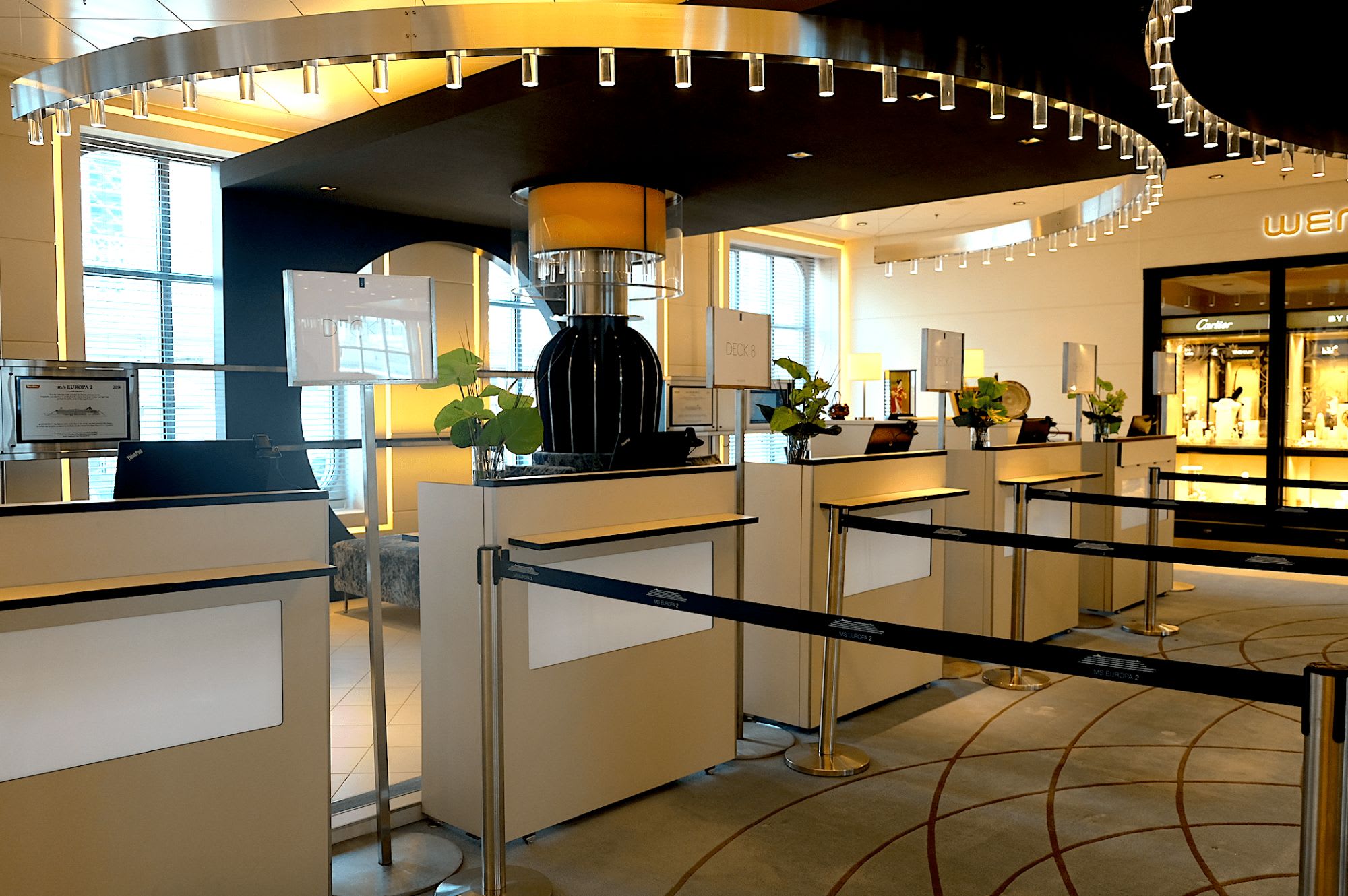 客船オイローパ(MS Europa)はドイツ人向け、客船オイローパ2(MS Europa2)はインターナショナル向けの客船ということで、インターナショナル・スタッフが常駐しているとのこと。