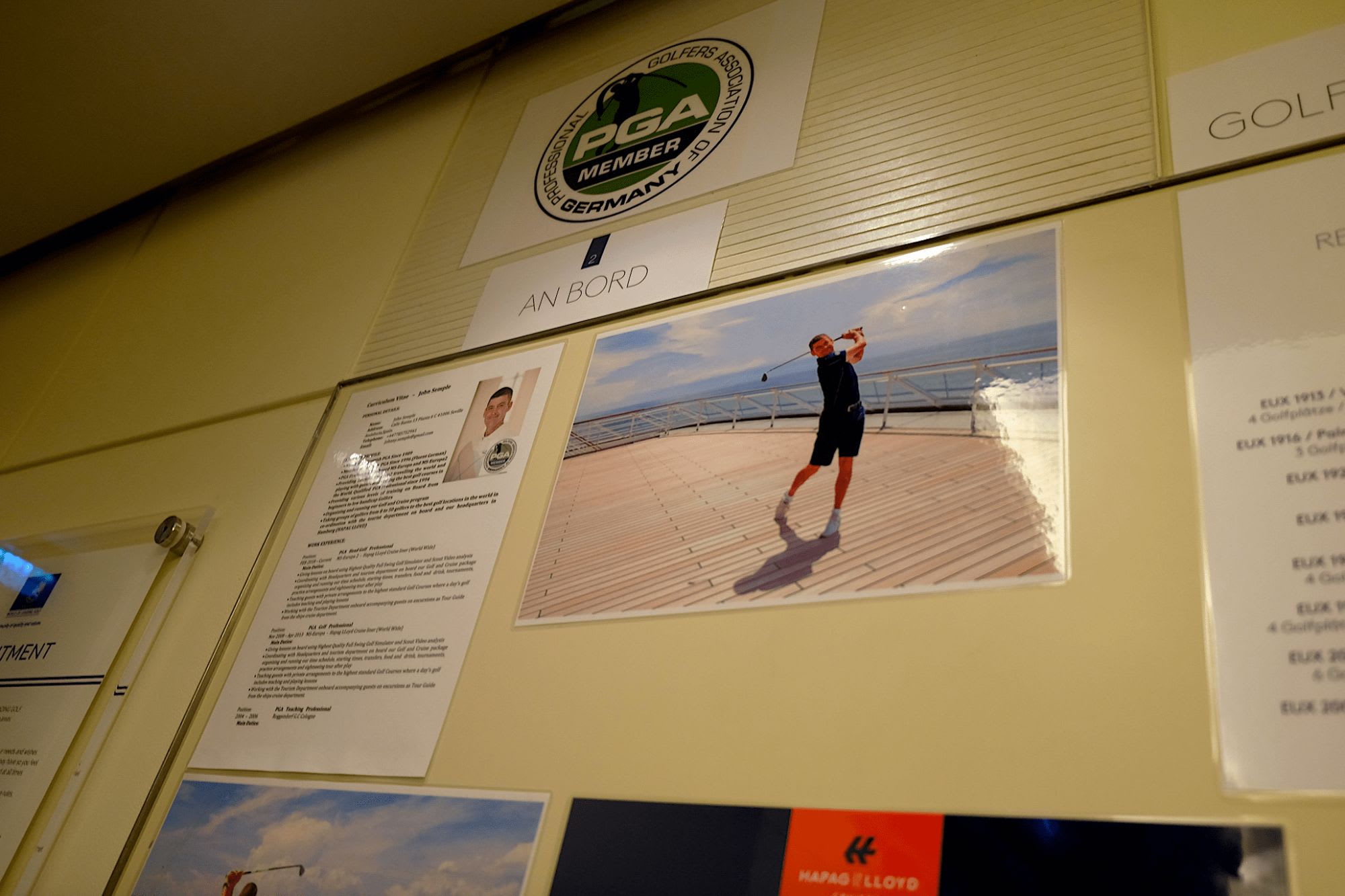 ゴルフ・テーマクルーズなどをおこなうなど、ゴルフに力をいれているオイローパには、ゴルフシュミレーター2台が完備。シュミレーターを無料で自由に利用して練習ができる他、レッスンプロから教わることも可能。(有料)