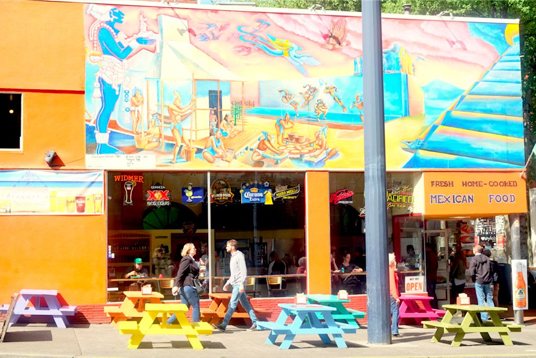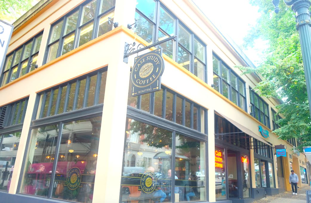 パステルカラーがなんとも可愛らしいお店はポートランドのおしゃれな町並みとぴったりです