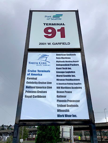 9-1. ホーランド・アメリカ(Holland America)のシアトル乗船港は「スミス・コーブ・クルーズターミナル・ピア91」(Smith Cove Cruise Terminal at Pier 91)です。