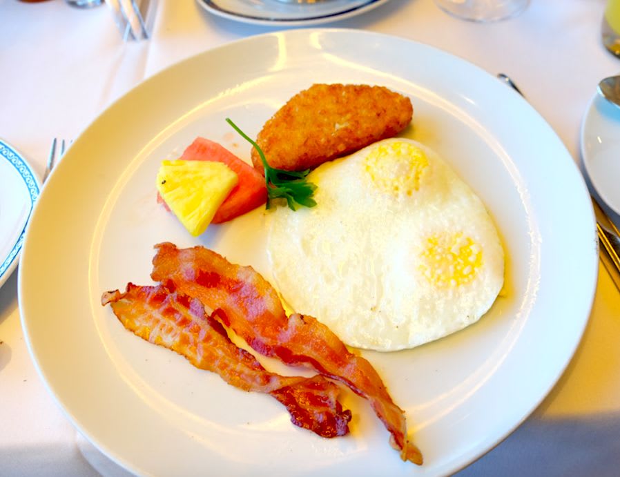 窓側の席に座ってホエール・ウォッチングをしながら朝食をいただきます。
