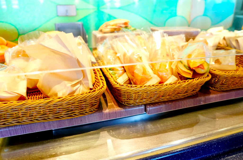 寄港地観光前やお夜食のタイミングには、袋詰めのサンドイッチも
