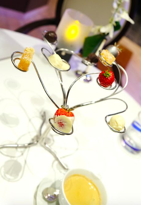 食後に出てくるチョコレートタワーは芸術的ですね