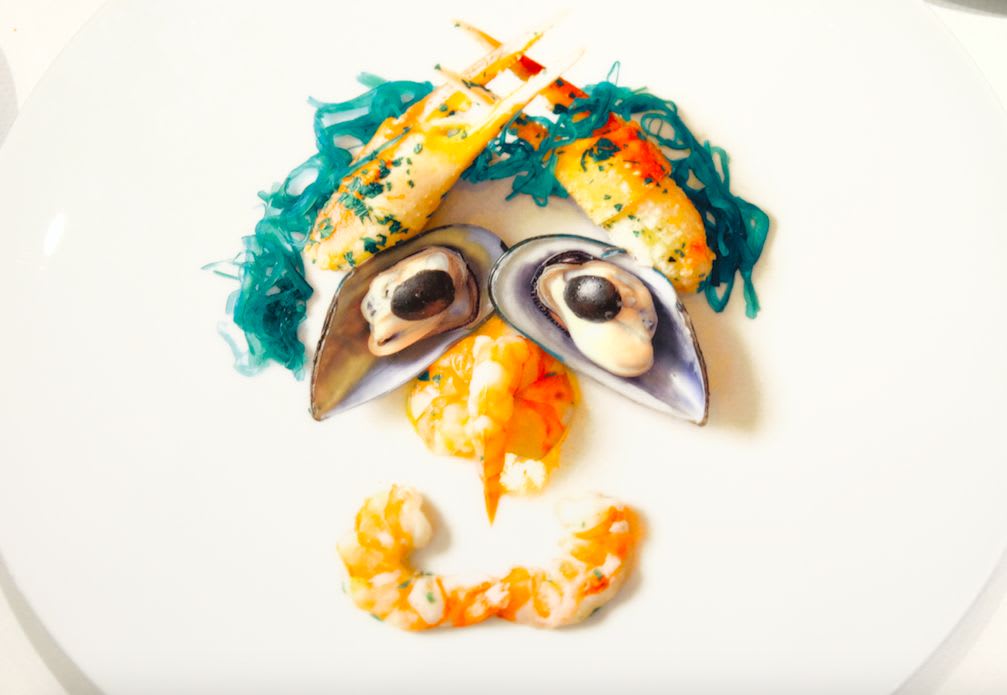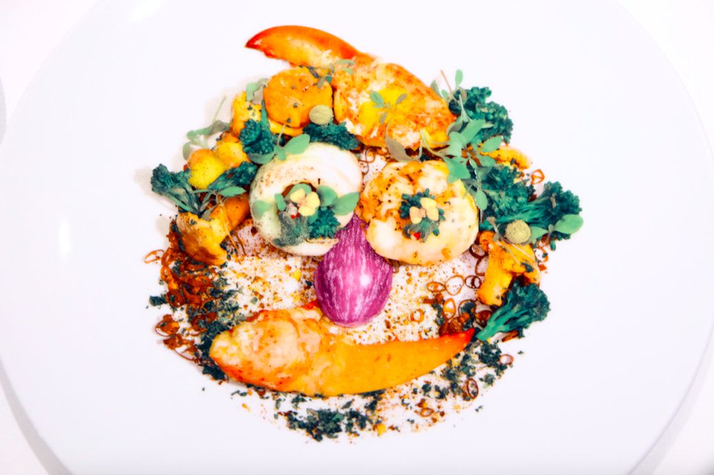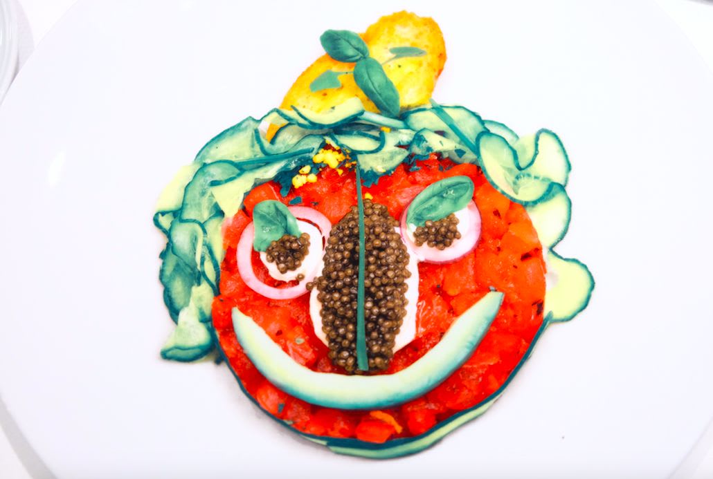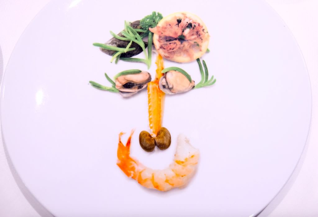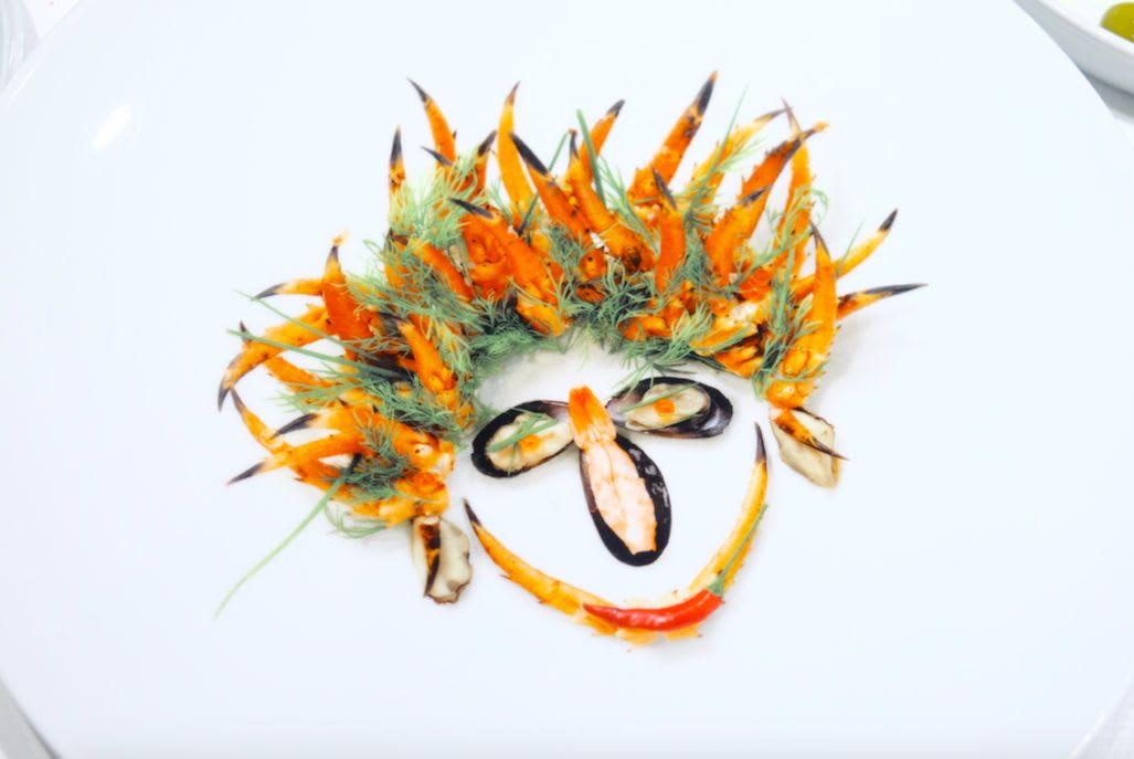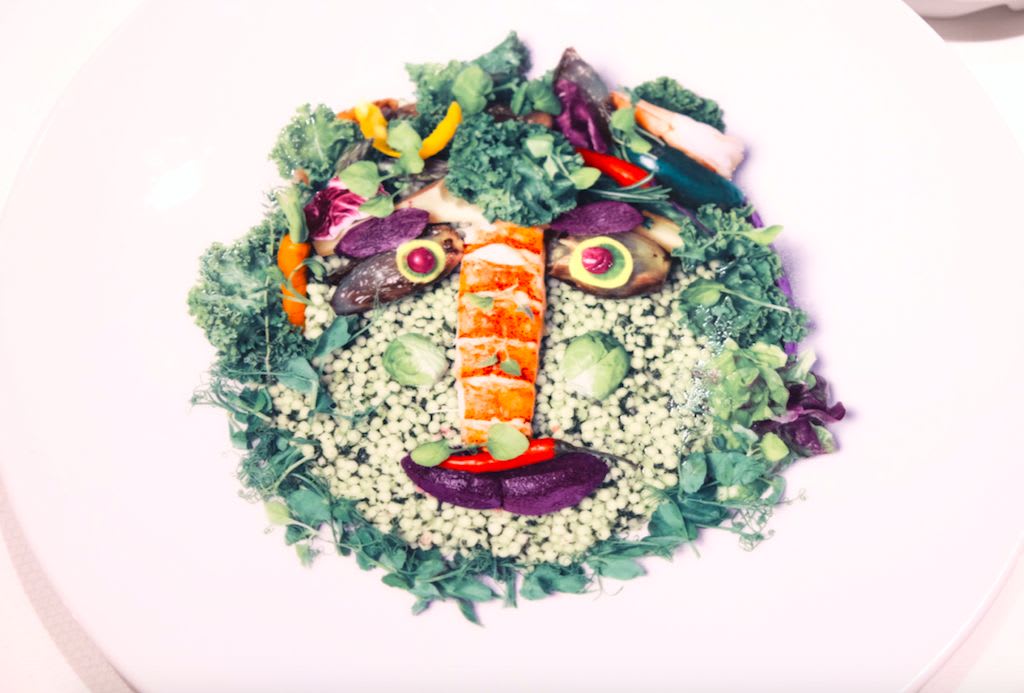 素材がこれでもかという程大胆に使われている印象です。かわいらしい水色のメニュー表や、食材で人の顔に見立てたデザインのサービスプレートからも分かるように、ポップでオシャレなレストランでした。お料理の提供の仕方もひと味ちがって、食べる人にワクワクしてもらいたいというシェフの気持ちが伝わってくるようでした。