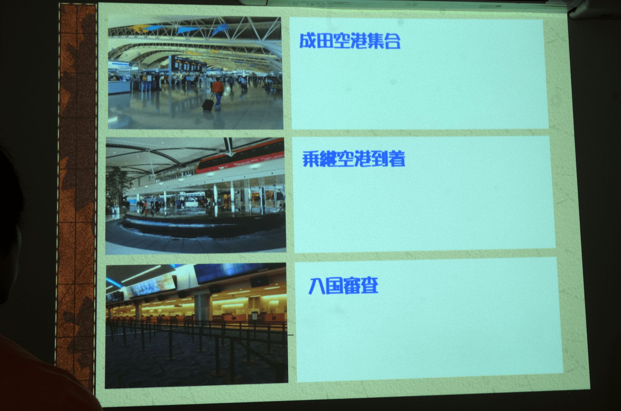 私が添乗で撮ってきた写真を使いまして、空港到着から流れを紹介したいと思います。