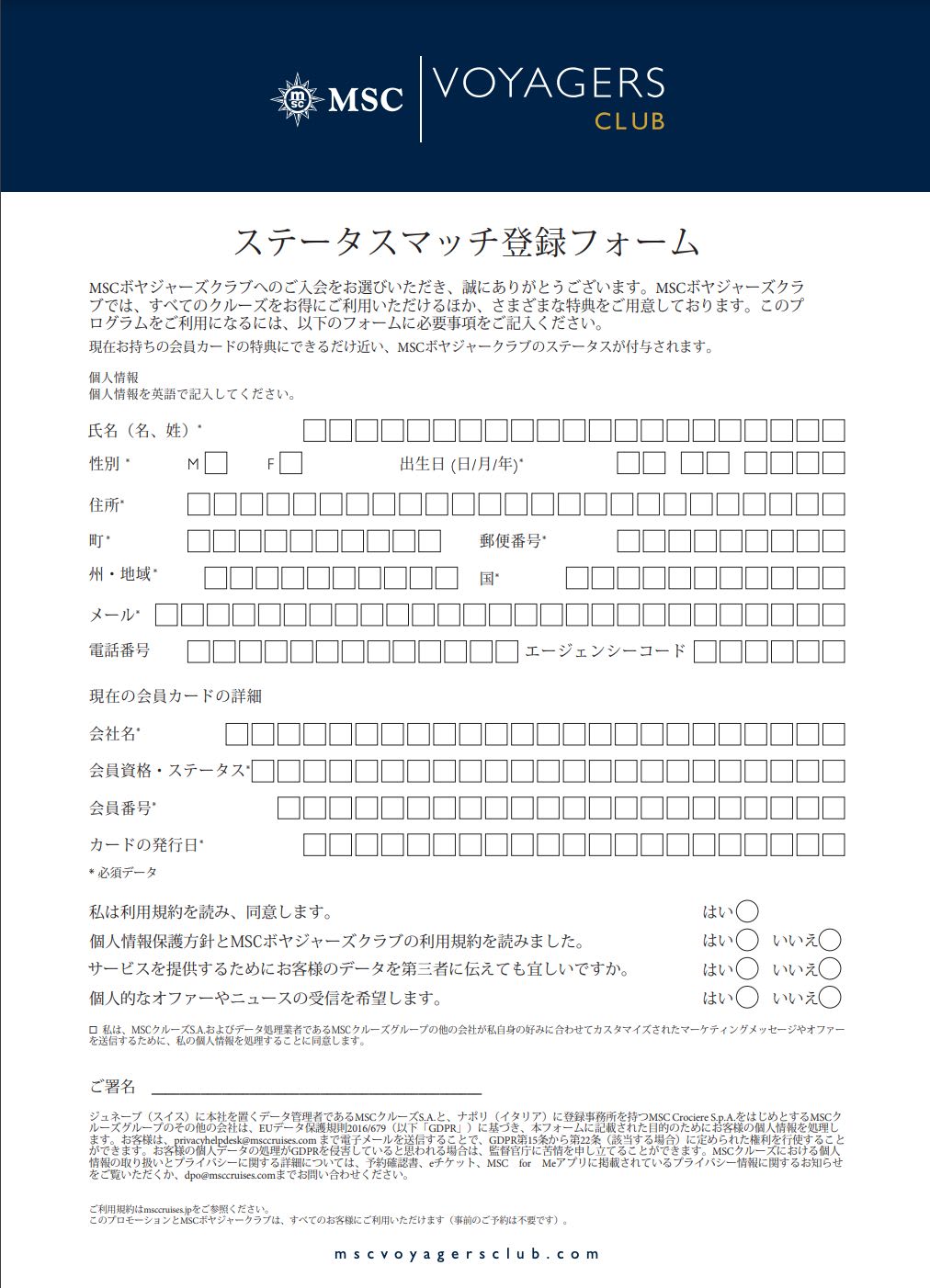 - MSCクルーズでは、他クルーズラインの会員ステータスに合わせてステータスマッチができる