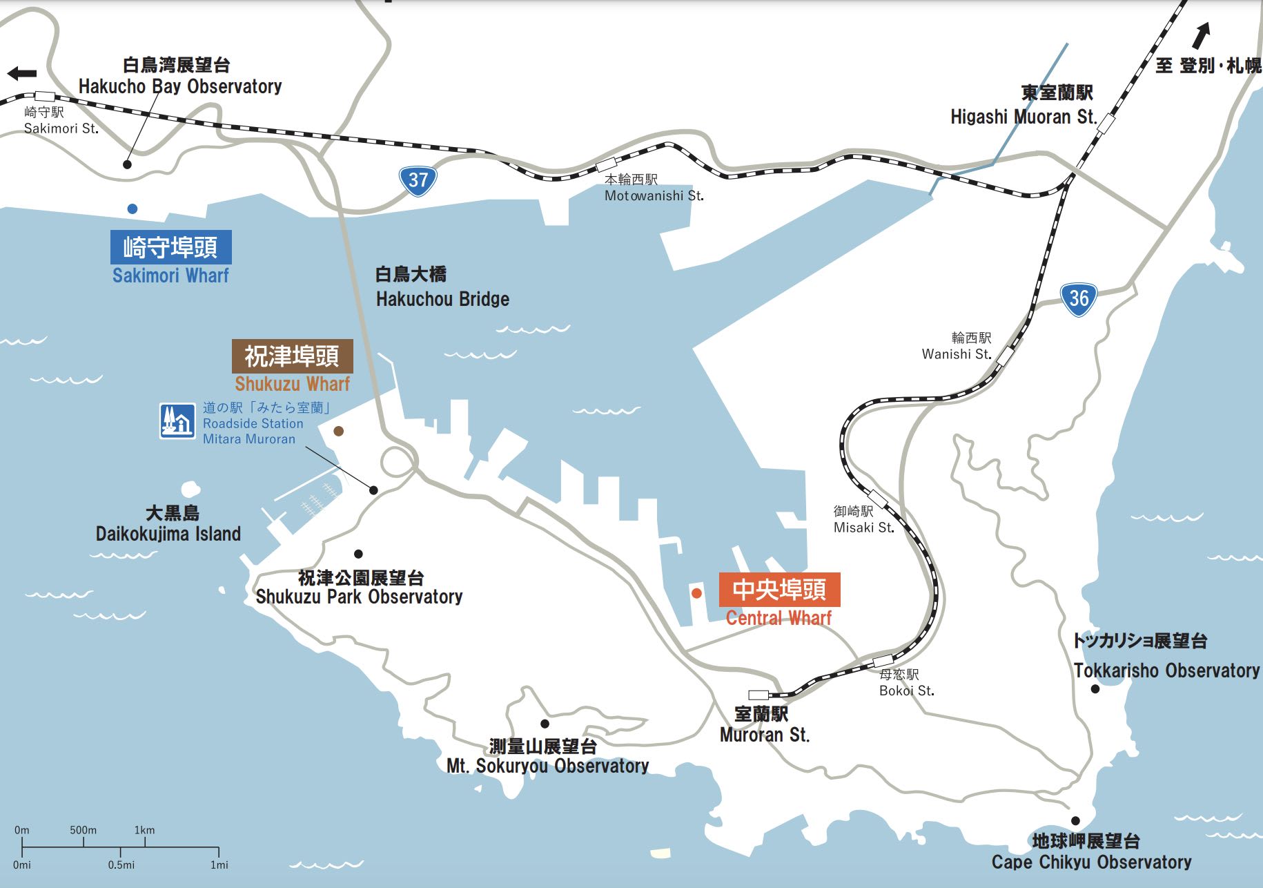 室蘭港は「祝津埠頭」に入港予定で、埠頭近くには道の駅「みたら室蘭」があり、寄港時間を有効に利用できそうです。