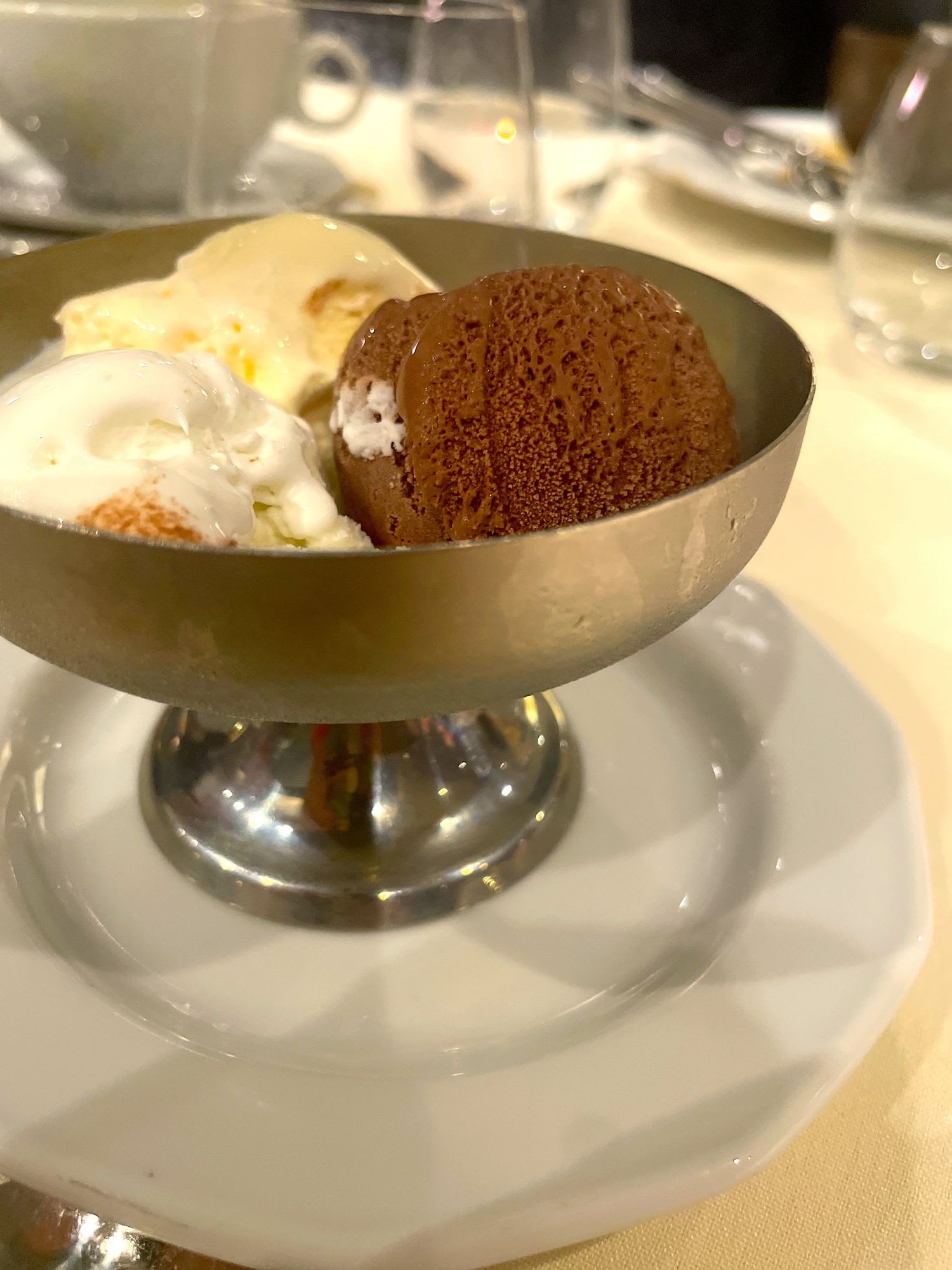 初日の夜は、フリーシーティングという、ダイニングに行った順番で振り分けられるテーブル、翌日以降は決まったテーブルに案内されるという形式でしたが、どちらの担当のクルーの方にしても、本当に優しく、温かく声をかけてくれました。