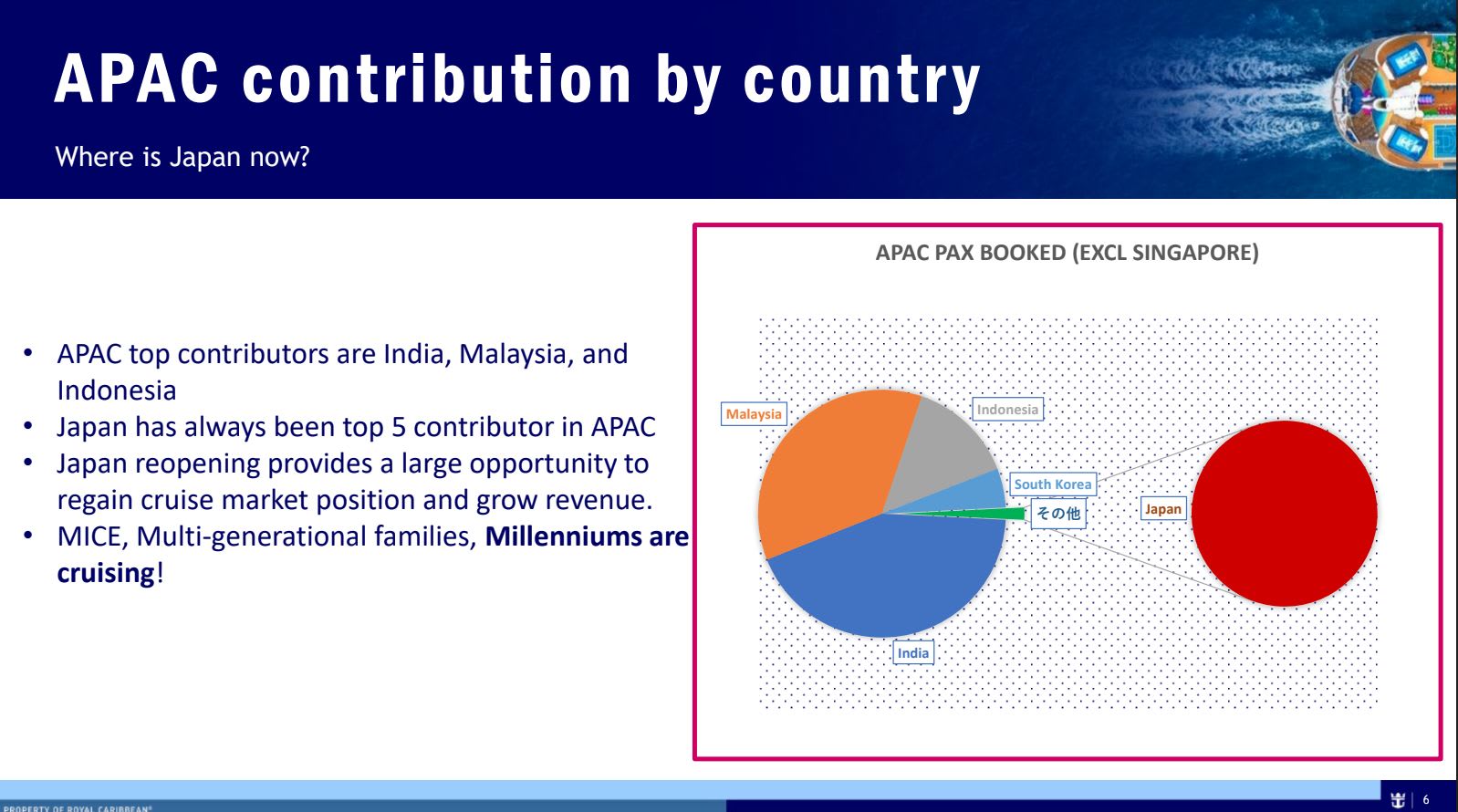 数字を見ても分かるように、新規客がここにきて増えている印象です。実は、ここ数年はロイヤル・カリビアンに乗船したことのない方、その中でも特に未就学児童のご家族連れというペルソナを意識して、PR活動をしてきました。