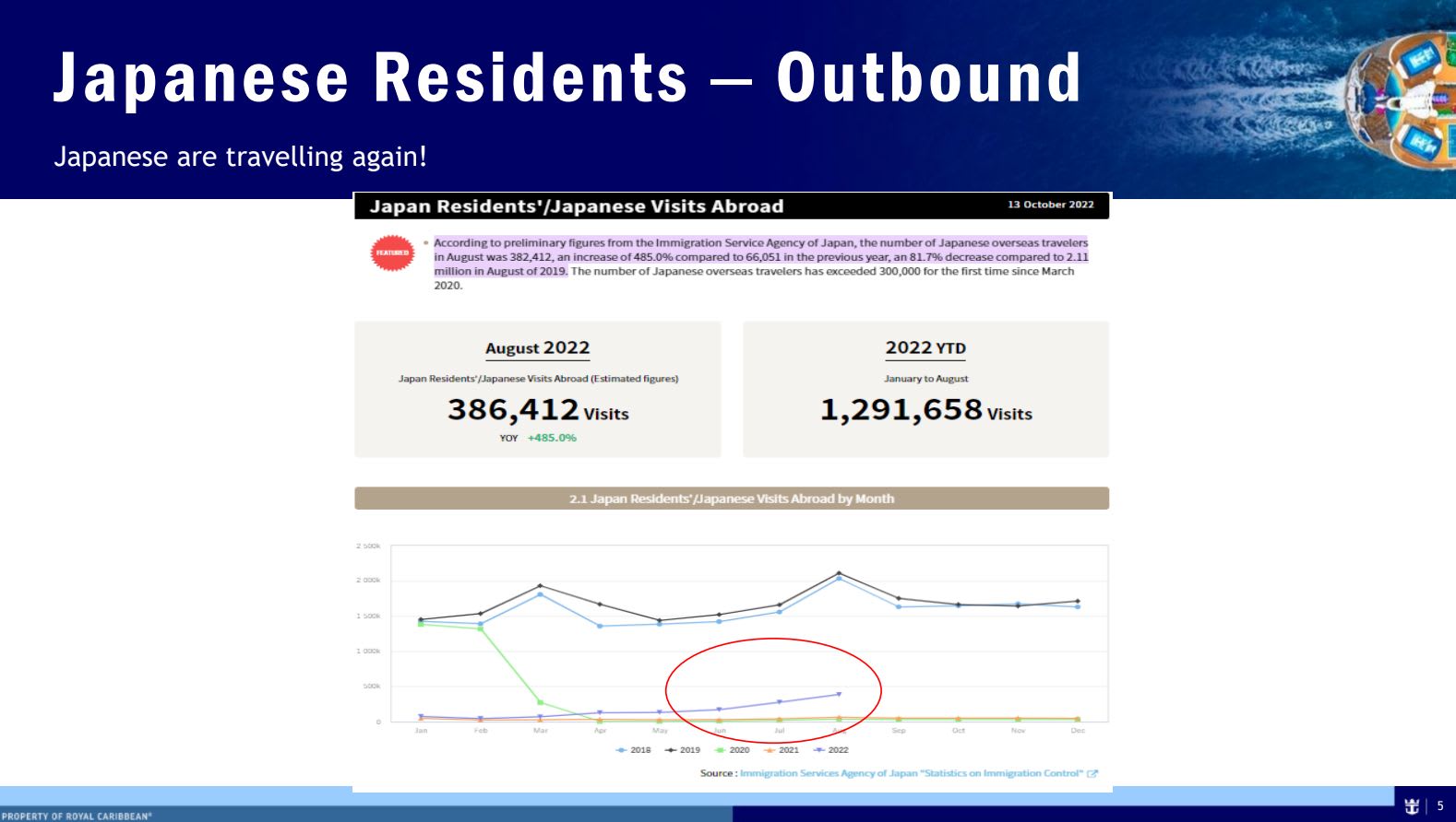 Cruisemans:確かに、5類に変更されると、これまで溜まっていたアウトバウンド需要が強まっていきそうですよね。まずは、コロナ前の水準まで集客を戻すということを考えていますか?